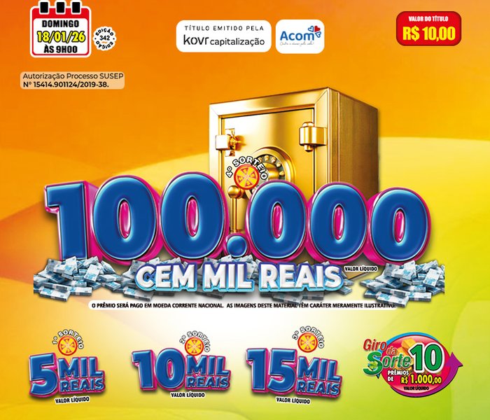 Os sorteios ocorrem ao vivo todos os Domingos, à partir das 09h00, com transmissão pela TV ALTEROSA. E também pelas rádios CULTURA 1420 AM, Rádio 87,9 FM, Rádio NOVA ONDA 91,5 e Rádio Candidés FM 100.5